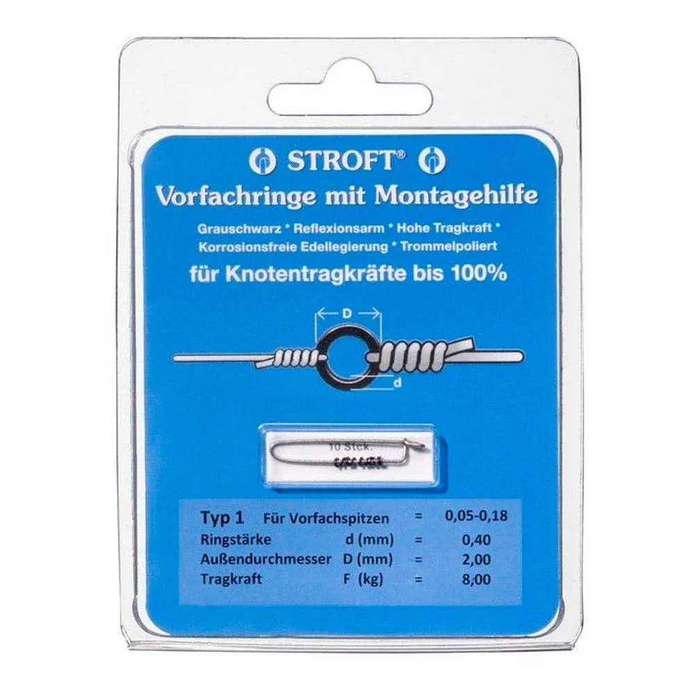 The rings are manufactured utilising a high-grade, corrosion-resistant alloy. They pass through various manufacturing procedures and are then drum polished to ensure smoothness as well as maximum static friction, thereby guaranteeing the highest knot strength. Finally they are anodised, resulting in a grey black sheen that reflects very little light. The rings increase the braking strain of connections between two lines of up to 100%. The rings simplify changing leaders and avoid repeatedly shortening the main line. They are well suited for use in combination with dry-fly leaders; the rings are very light and are carried by the waters surface-tension. Also enclosed are mounting instructions, knot sketches and breaking strain table.