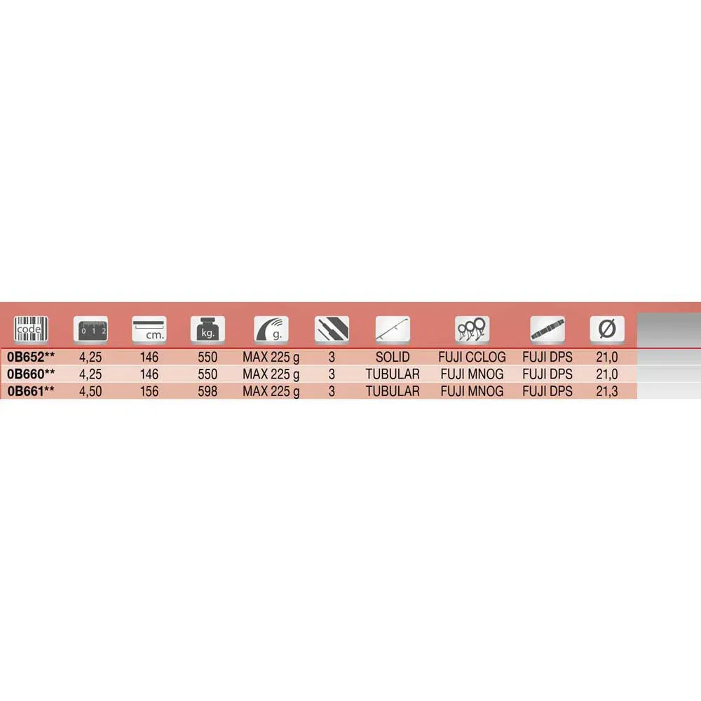 Series of rods for the surfcasting specialty with a maximum action of 225 g that allows you to easily achieve long distances.