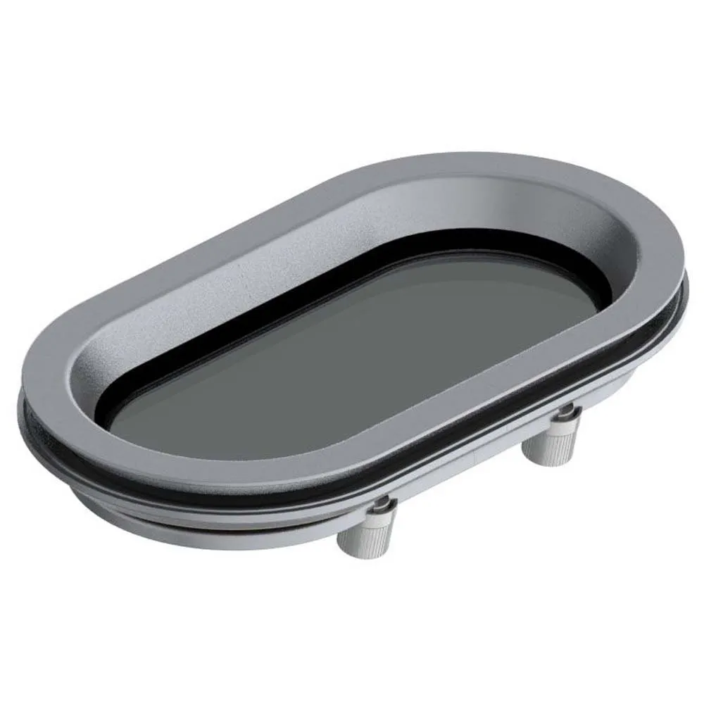 Suitable for use in the hull side. Satin anodized aluminum frame. “Smoke” coloured opening pane. Clamp fixing ensures that no fasteners are visible. As standard mosquito screen is supplied. A fixed version of each opening porthole is also available.