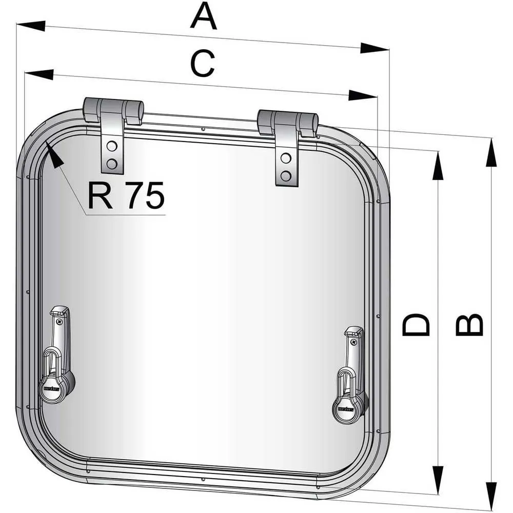 Satin sheen anodized aluminum frame. “Dark smoke” coloured acrylic. Lid can be held open at any angle up to 90°. These hatches have a satin sheen anodized aluminum frame with a 75 mm corner radius and a 10 mm ‘dark smoke’ coloured acrylic lid. A friction hinge allows the hatches to remain open at any angle up to 180°. Type PLANUS is suitable for design category A, Area II. The first image is one version of our PLANUS hatches. The hatches differ in shape and in the number of hinges, adjusters and handles. This information can be found in the additional information.