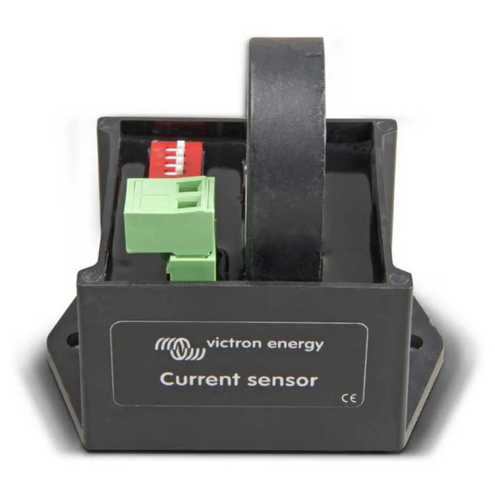 The AC Current sensor is a simple external current sensor used to measure AC Current, Power (VA) and calculate energy of a PV Inverter connected to the AC input or output of a Multi or Quattro. These values can then be displayed and sent to the VRM-website by the Color Control. The two measurement wires can be connected to the AUX and/or temperature sense input of a Multi or Quattro.