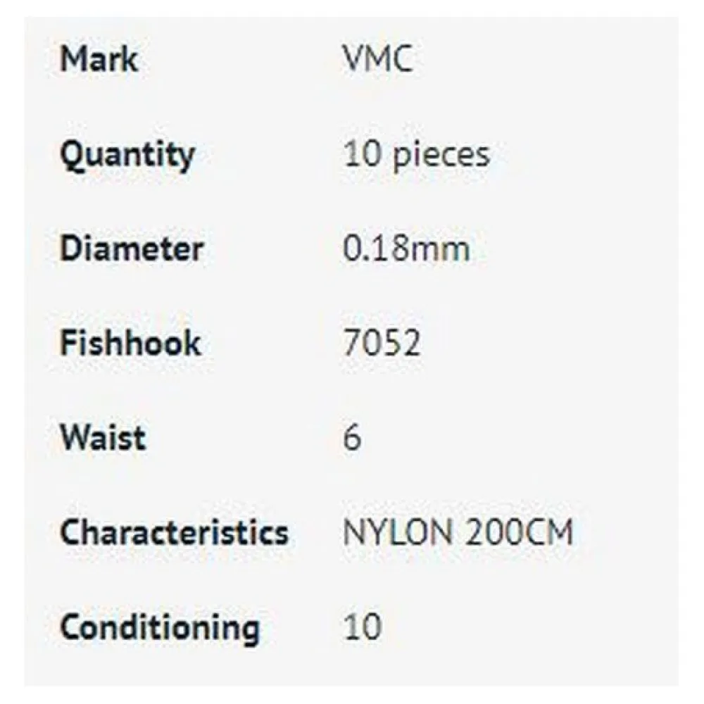 Experience the difference of a premium, pre-tied hook and leader system. The VMC Trout 200 cm Tied Hook is a must-have addition to any trout angler´s tackle box. Its combination of superior hook quality, reliable nylon leader, and convenient pre-tied design makes it the ultimate choice for targeting these prized game fish. Upgrade your trout fishing game and experience the VMC advantage.