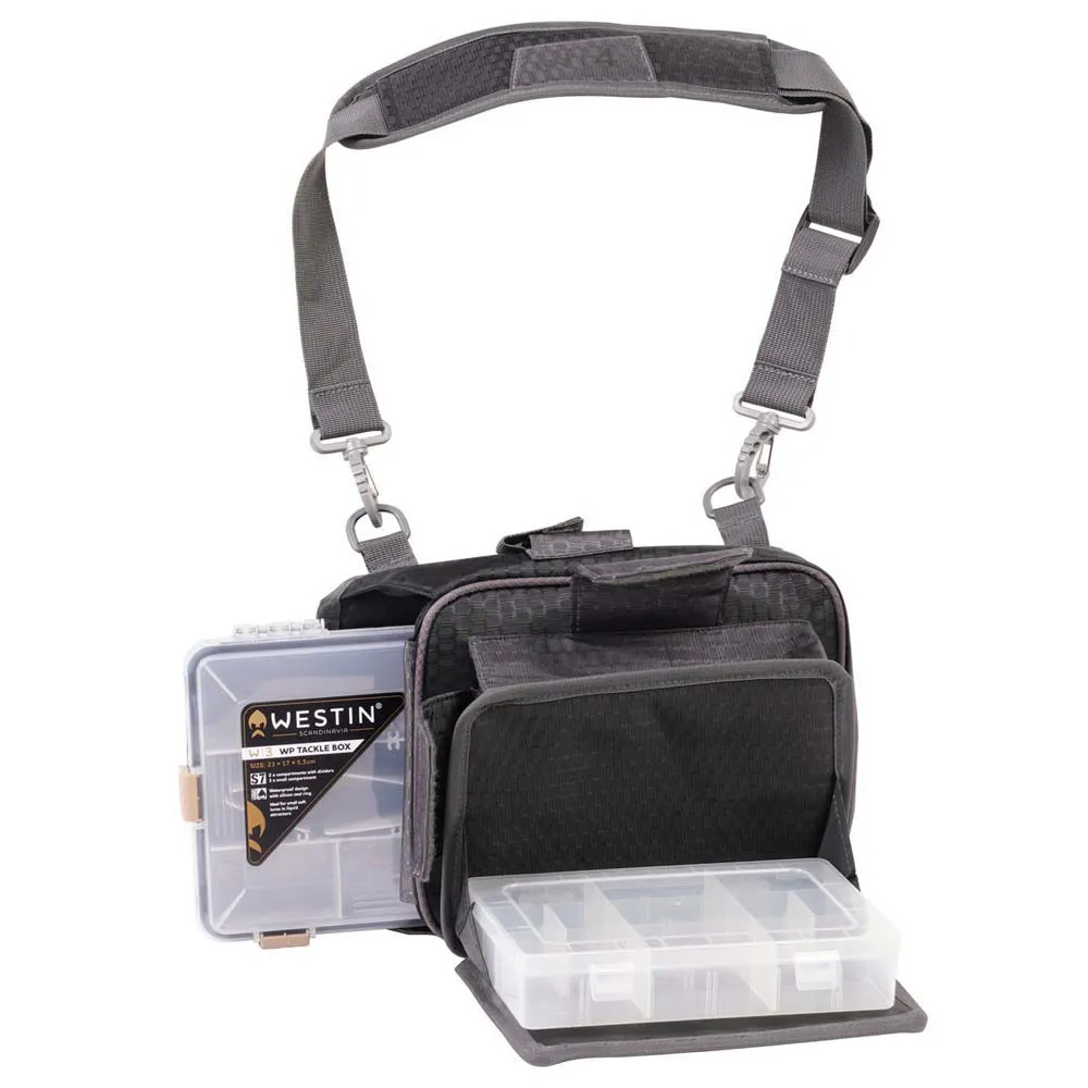 Upgrade your fishing game with the WESTIN W4 Quick tackle stack, the ultimate solution for gear organization. This durable bag is built from heavy-duty, waterproof materials to protect your tackle in any weather. Its spacious design features a large main compartment for tackle boxes, multiple pockets, and smart extras like a built-in rod holder and gear attachment points. Carry it all in comfort with an adjustable shoulder strap and rely on the non-slip bottom for stability on any surface. Keep your essentials organized and accessible for a more efficient and enjoyable day on the water