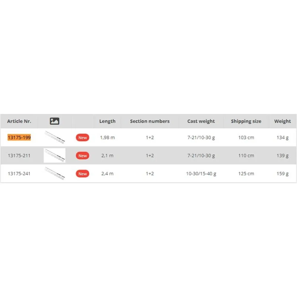 Whether you choose the 198 cm, 210 cm, or 240 cm spinning rod, you´ll receive two pieces of different ´´strength´´ tip sections. The difference lies in the casting weights and, consequently, the load capacity. This allows us to tailor the setup precisely to the situation, whether it´s adjusting to the line, lure, or expected size of the fish.