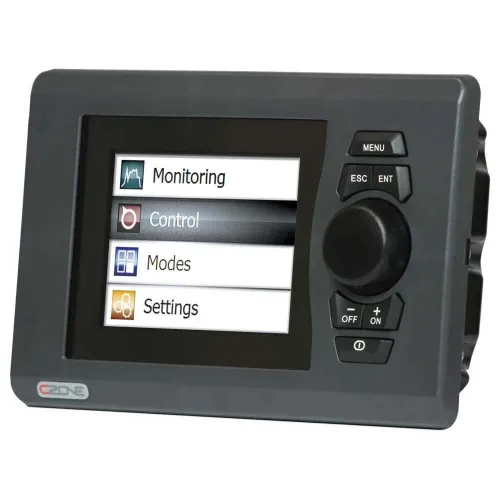Los displays CZone son la interfaz entre la red CZone y el usuario. Ofrecen un control total de los circuitos, así como la posibilidad de visualizar la información importante de los sistemas de a bordo, tales como los niveles de los tanques y los niveles de potencia. Además, también proporcionan alarmas sonoras y visuales con el diagnóstico del sistema.