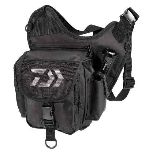 Bolso de generosas dimensiones sin exagerar. Muy cómodo de llevar al hombro un poco grande para la cintura. Buenos materiales. ¡Calidad Daiwa!