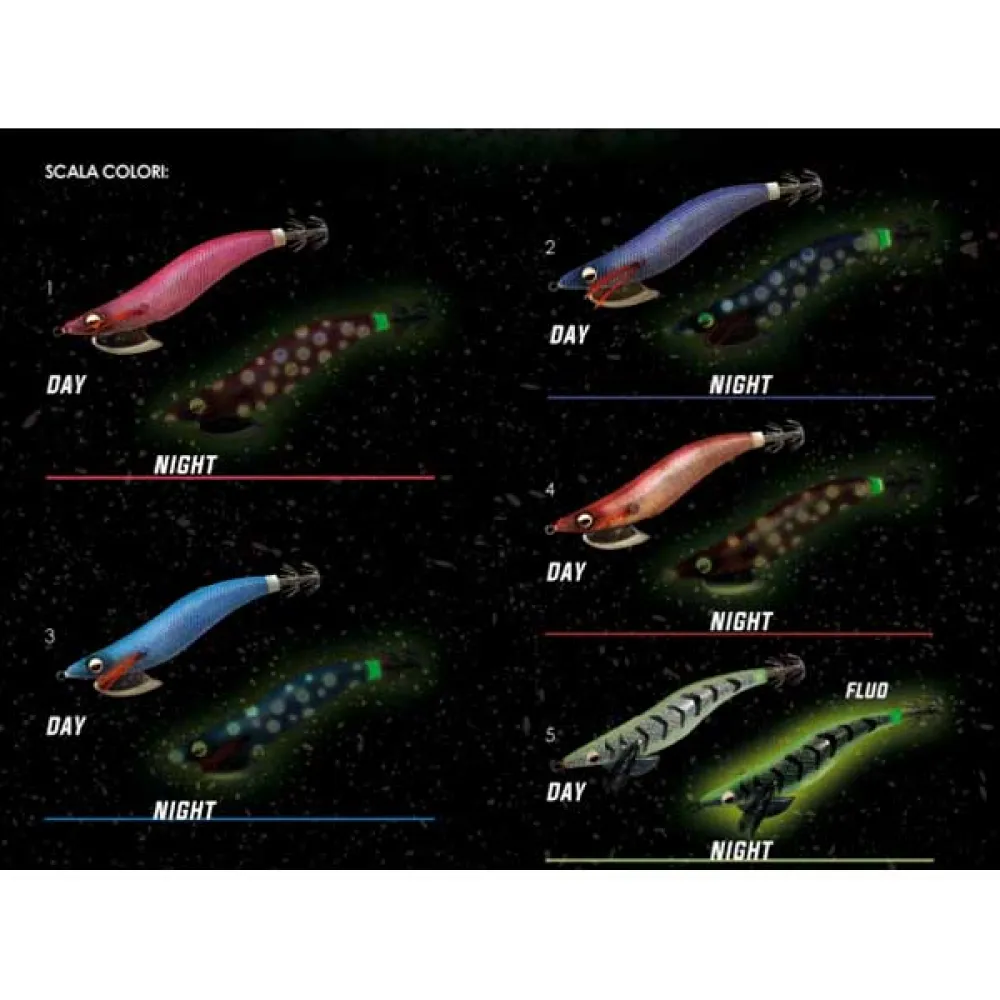 Presentamos una nueva generación de Egi con cuerpo hidrodinámico, ojos y cola fluorescentes, libreas con puntos de fluorescencia contrastantes y espinas puntiagudas.
