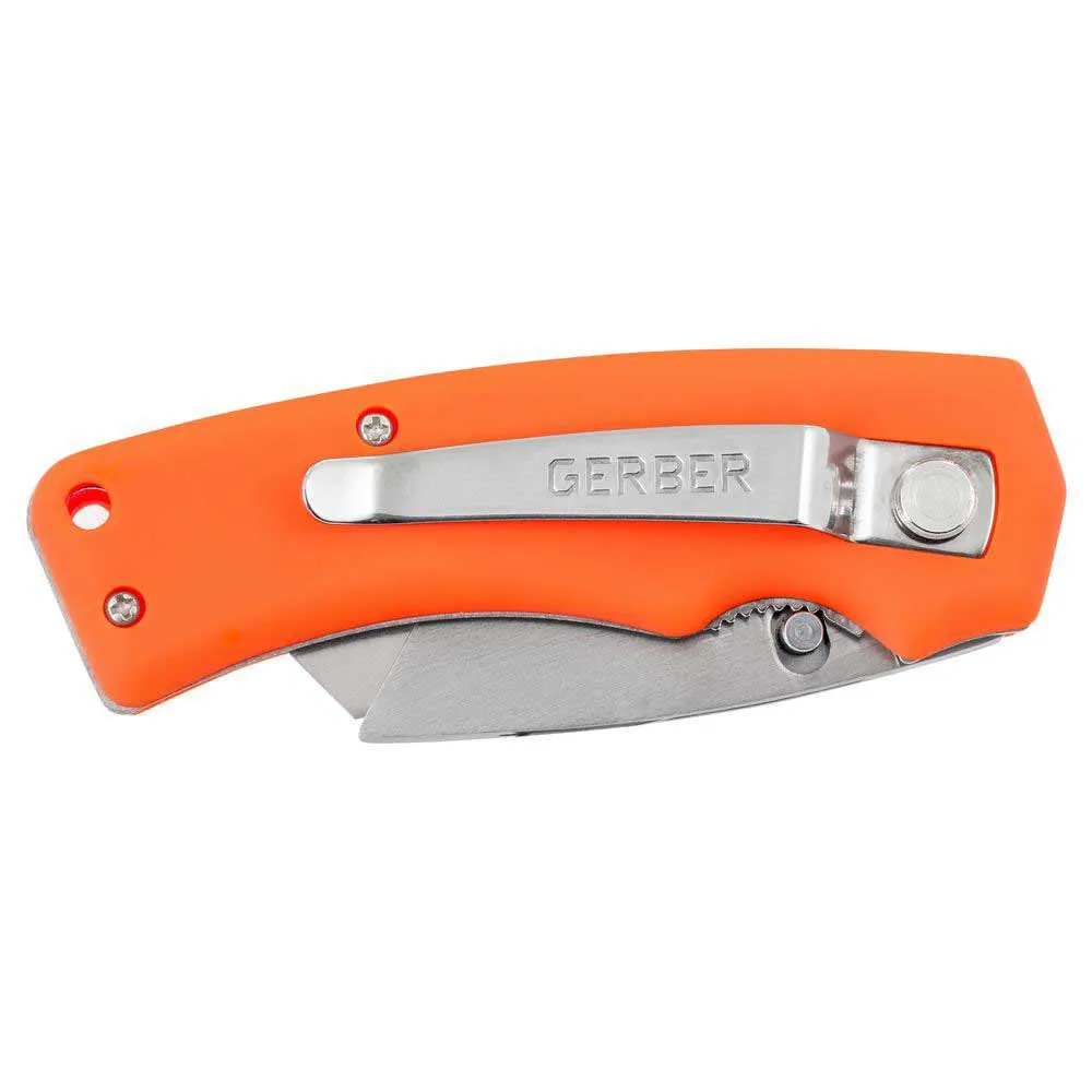 Esta navaja multiusos está cargada con características en el sitio: un bloqueo de resorte para presionar y soltar fácilmente el reemplazo de la hoja, un clip de bolsillo para facilitar el transporte y una hoja utilitaria fácilmente disponible.