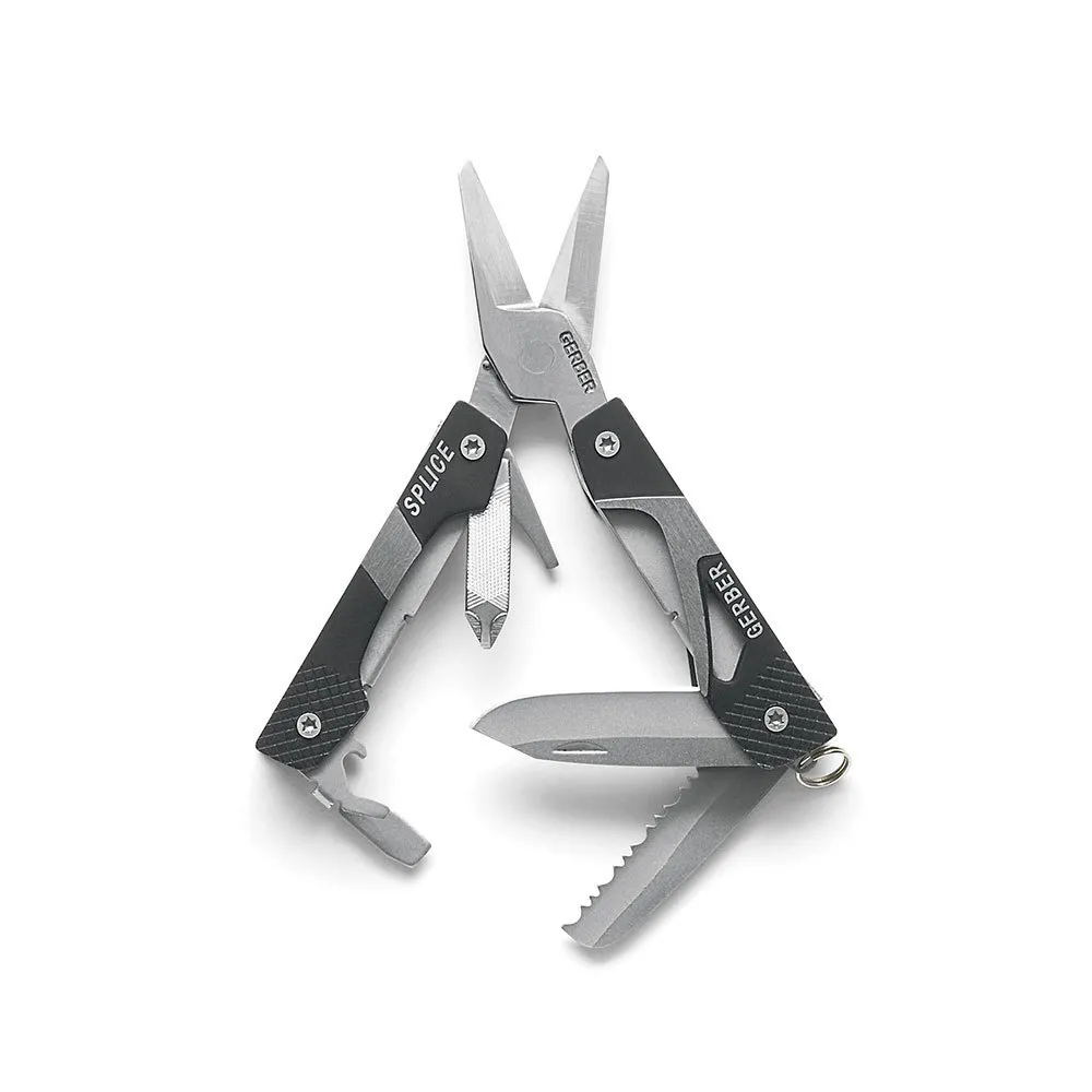 Tijeras muy pequeñas con múltiples funciones. Con un conveniente diseño abierto de mariposa y 8 componentes útiles, esta mini herramienta lista para llavero nunca está demasiado lejos de su alcance.