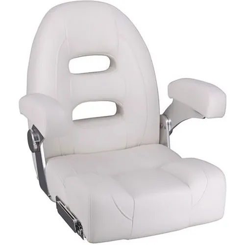 Tome el mando de su embarcación con las características ajustables de la silla de capitán GOLDENSHIP. Personalice su posición de asiento con los mecanismos de giro y deslizamiento suaves y confiables. Ajuste sin esfuerzo la altura y el ángulo del respaldo para encontrar el ajuste ergonómico perfecto para sus necesidades individuales. El refuerzo abatible proporciona soporte adicional para los muslos y se puede guardar fácilmente cuando no sea necesario.