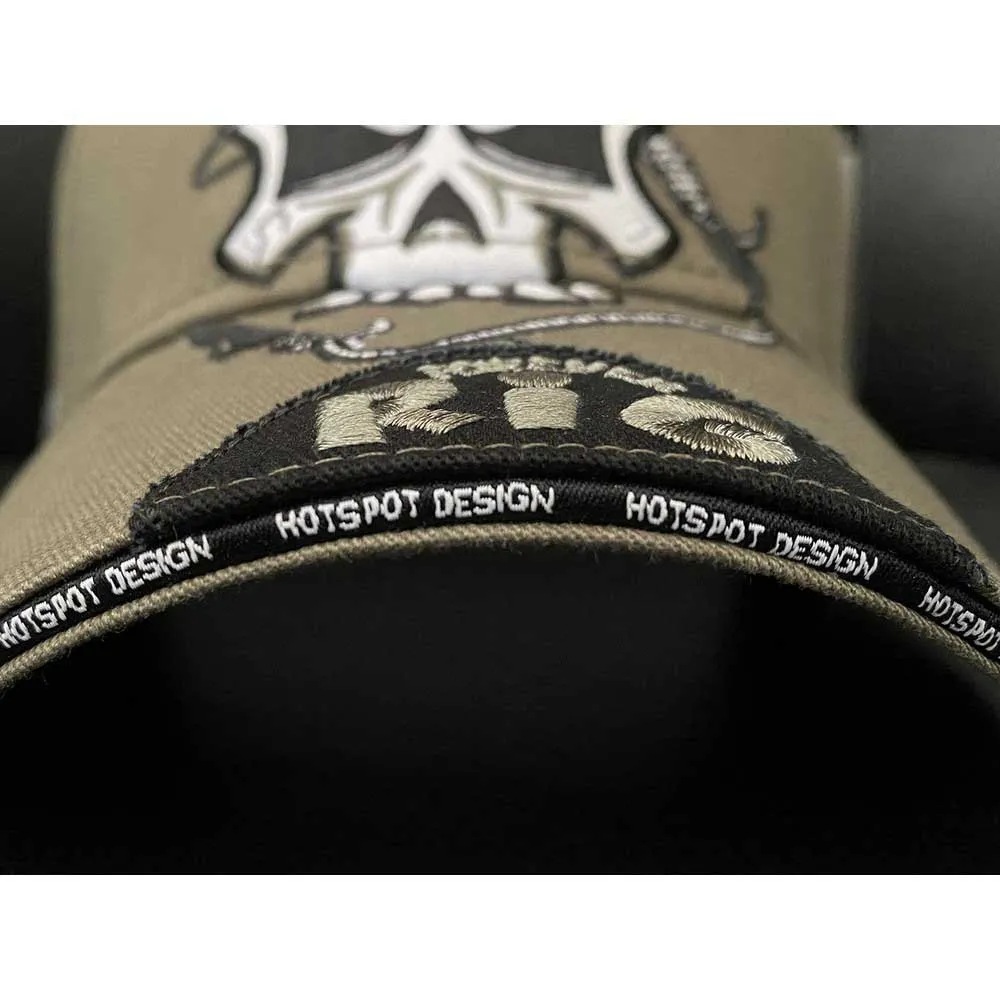 Visera: parche con texto FOREVER RIG en bordado plano y texto RIG en bordado 3d, sándwich en color de contraste con logo Hotspot Design impreso en todo el largo.