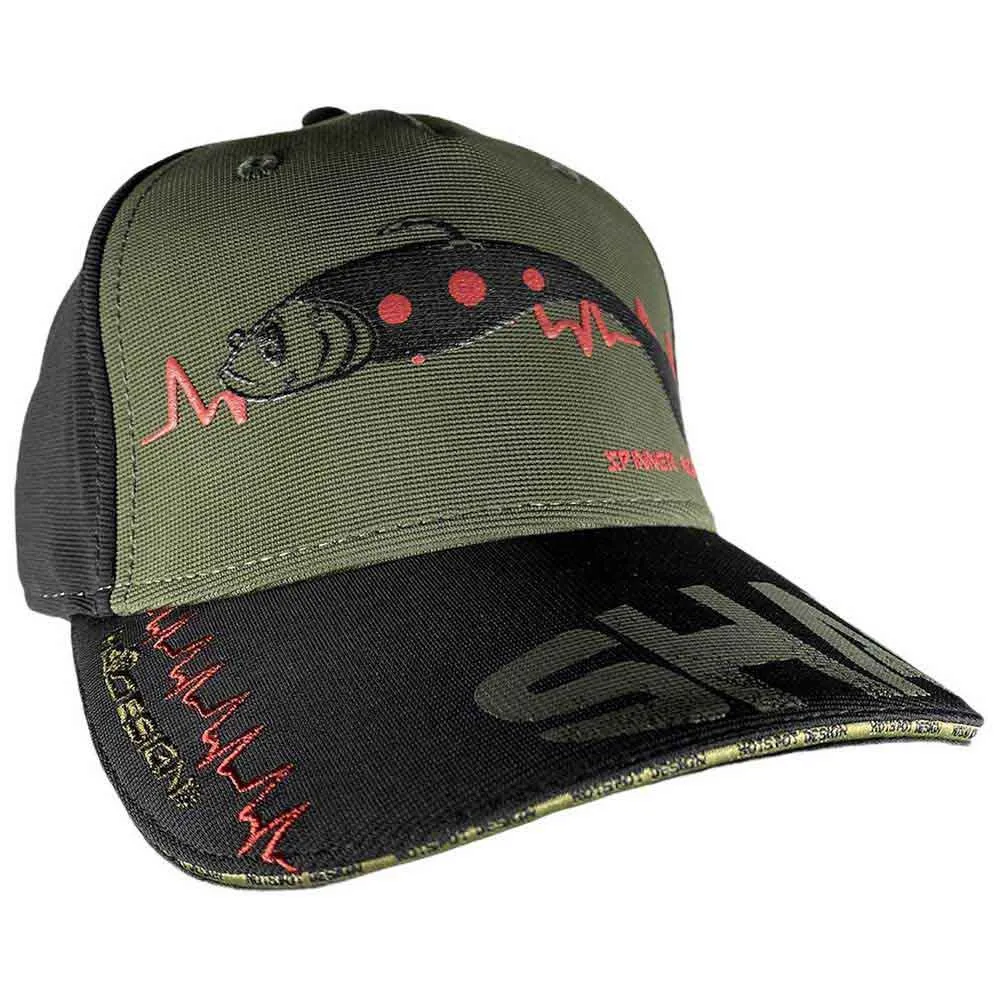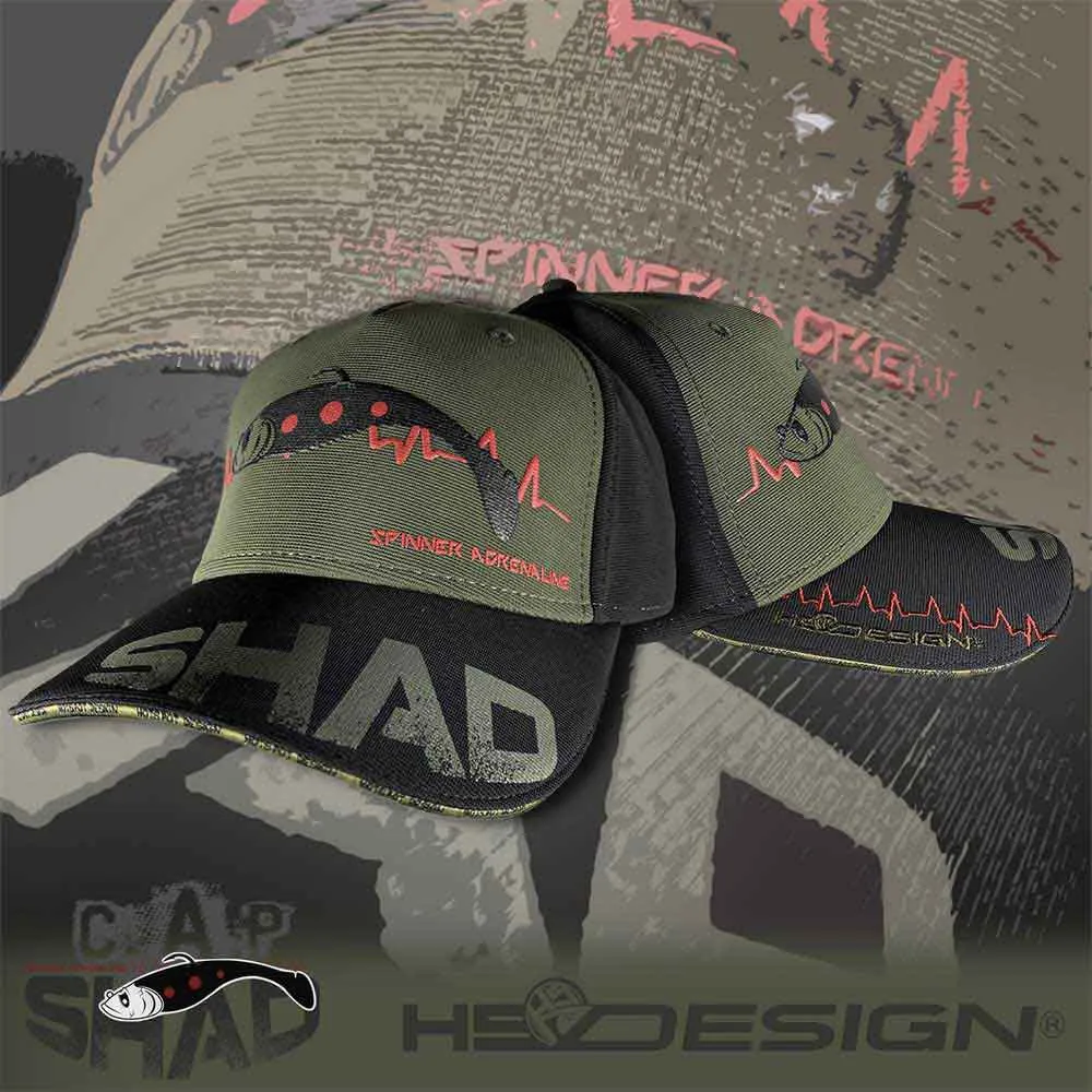 Parte delantera de la gorra: señuelo Shad en una impresión en relieve bien evidente con líneas de "adrenalina" bordadas en los dos lados.