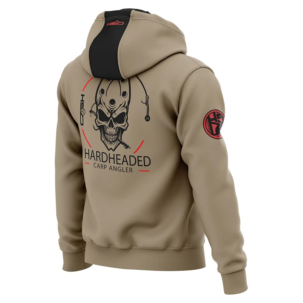 La sudadera Hardheaded presenta un diseño especial donde se ha enfatizado la plomada para que sea la cabeza del pescador usando una calavera.