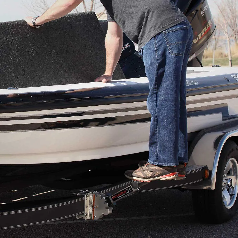 Este innovador sistema de peldaños extensibles/de múltiples ángulos se conecta al marco de su remolque y permite un fácil acceso a prácticamente cualquier lugar de su embarcación.