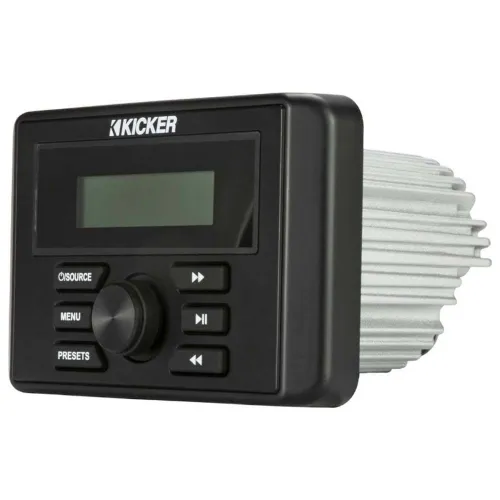 El KMC3 está construido para soportar los elementos, con una certificación IPX6 de resistencia a la intemperie, lo que garantiza que pueda soportar salpicaduras potentes, fuertes lluvias y sol intenso sin perder el ritmo. Su vibrante pantalla LCD a todo color de 2.5 pulgadas proporciona una visibilidad nítida de la información de tu pista, la fuente y la configuración, incluso a la luz directa del sol, y cuenta con un modo día/noche para una visualización óptima en cualquier momento. Con opciones de conectividad versátiles que incluyen Bluetooth para transmisión de audio inalámbrica, un puerto USB trasero para reproducción y carga, y una entrada auxiliar RCA, puedes reproducir música desde prácticamente cualquier dispositivo. Esta unidad también sirve como un potente centro para la expansión del sistema, con salidas de preamplificador frontales, traseras y de subwoofer para conectar y controlar amplificadores externos para un sistema de sonido verdaderamente personalizado y de alto rendimiento. Para una mayor comodidad, el KMC3 es compatible con los controles remotos KICKER con cable (como el KRC12, que se vende por separado), lo que te permite administrar tu música desde múltiples ubicaciones en tu embarcación o vehículo.
