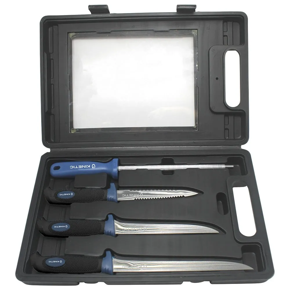 Este kit ofrece todo lo que necesita para procesar su captura. No importa si es grande o pequeño, tienes 3 cuchillos para todas las situaciones. El acero utilizado para estos cuchillos es fácil de afilar y el afilador incluido en segundos devolverá el cuchillo a un afilado perfecto. Incluye tabla de cortar.