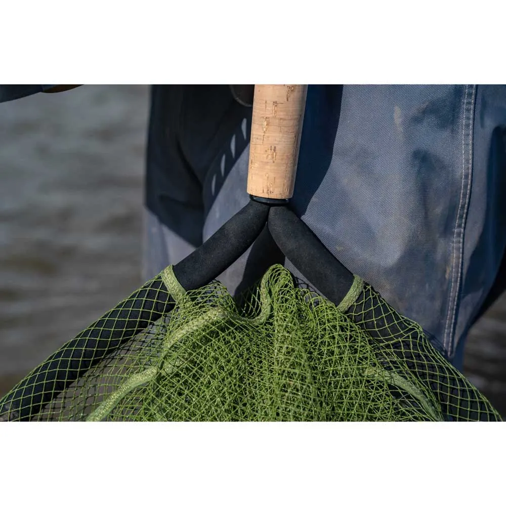 Diseñada específicamente para la pesca con caña en aguas poco profundas. Cuenta con una malla de goma de látex que no daña los peces y un marco de EVA ultraflotante. Hay un imán integrado en el mango de corcho duro, con un cordón de seguridad de goma extensible. Esto garantiza que si se le cae la sacadera mientras vadea, no se la llevará la corriente. Tamaño de la cabeza de la sacadera 26´´/66cm. Tamaño del mango 30cm. Profundidad de la malla 60cm para una fácil retención de los peces.