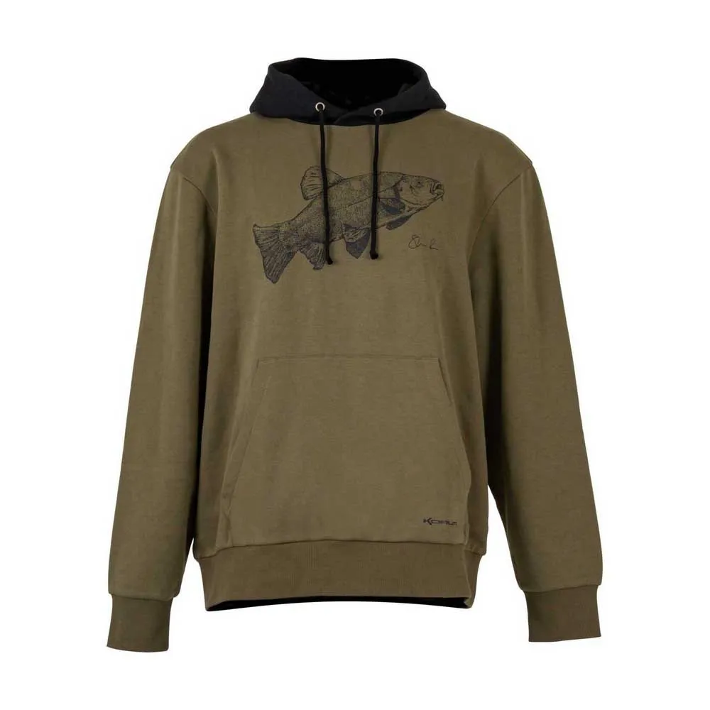 La serie Korum Classic ofrece productos sinónimos de la pesca gruesa tradicional. Esta elegante sudadera con capucha presenta la hermosa obra del artista de pesca, Steve Phillips.