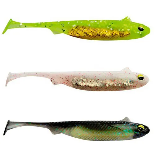 Su brillo interior provoca el mordisco. Este pequeño alevín de vinilo con destellos en su interior hará las delicias de los amantes de la pesca en ultraligeros. Podemos montarlo con cualquier tipo de cabeza plomada, incluso con dardo, ya que el material de fabricación es bastante duro y funcionará perfectamente. Sus ojos realistas y la acción de su cola le dan versatilidad para atrapar a cualquier depredador. Gracias a las dos aletas, en la parte superior y en la parte inferior de su cuerpo, el sábalo tiene una gran estabilidad de nado a cualquier velocidad de recuperación.