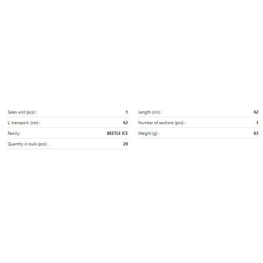 Cada componente de la MIKADO Beetle Ice ha sido elegido para convertirla en una herramienta perfecta para la pesca en hielo. Su construcción de una sola pieza garantiza la máxima resistencia y una sensibilidad ininterrumpida desde la puntera hasta el mango La acción de la caña está específicamente ajustada para la presentación vertical requerida para una pesca con jigging en hielo efectiva, permitiéndote impartir el movimiento perfecto y atractivo a tu señuelo. La combinación de una puntera de carbono completa y sensible, anillas de aluminio, un mango cálido y un zócalo para alarma de picada son componentes que la convierten en una herramienta perfecta para la pesca en hielo. Eleva tu experiencia de pesca invernal y convierte un día frío en el hielo en una aventura exitosa y gratificante.