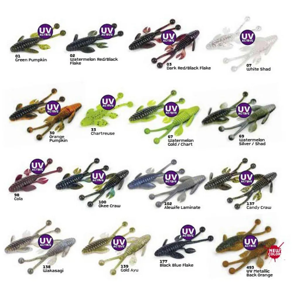 Los apéndices especiales que incorpora ofrecen micro vibraciones durante la acción de natación que combinado con las características flotantes del material, garantizan un efecto stand up del señuelo cuando se hace saltar por el fondo.