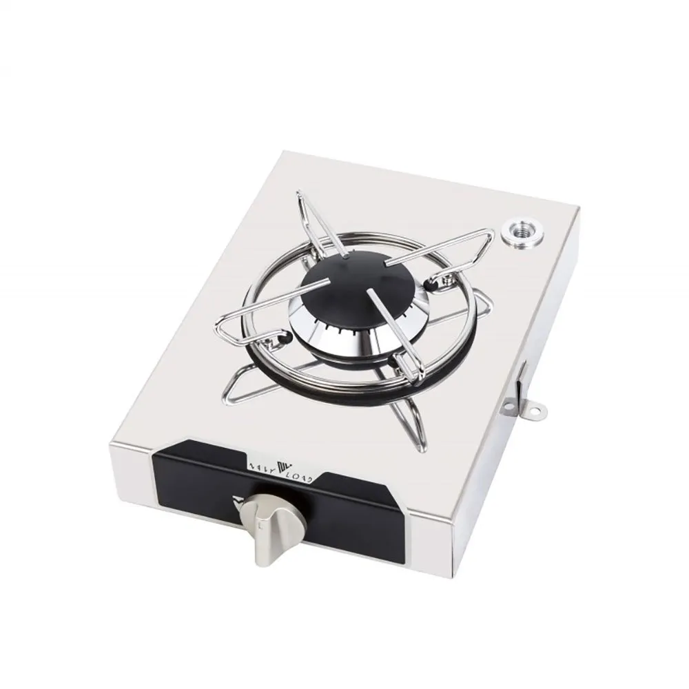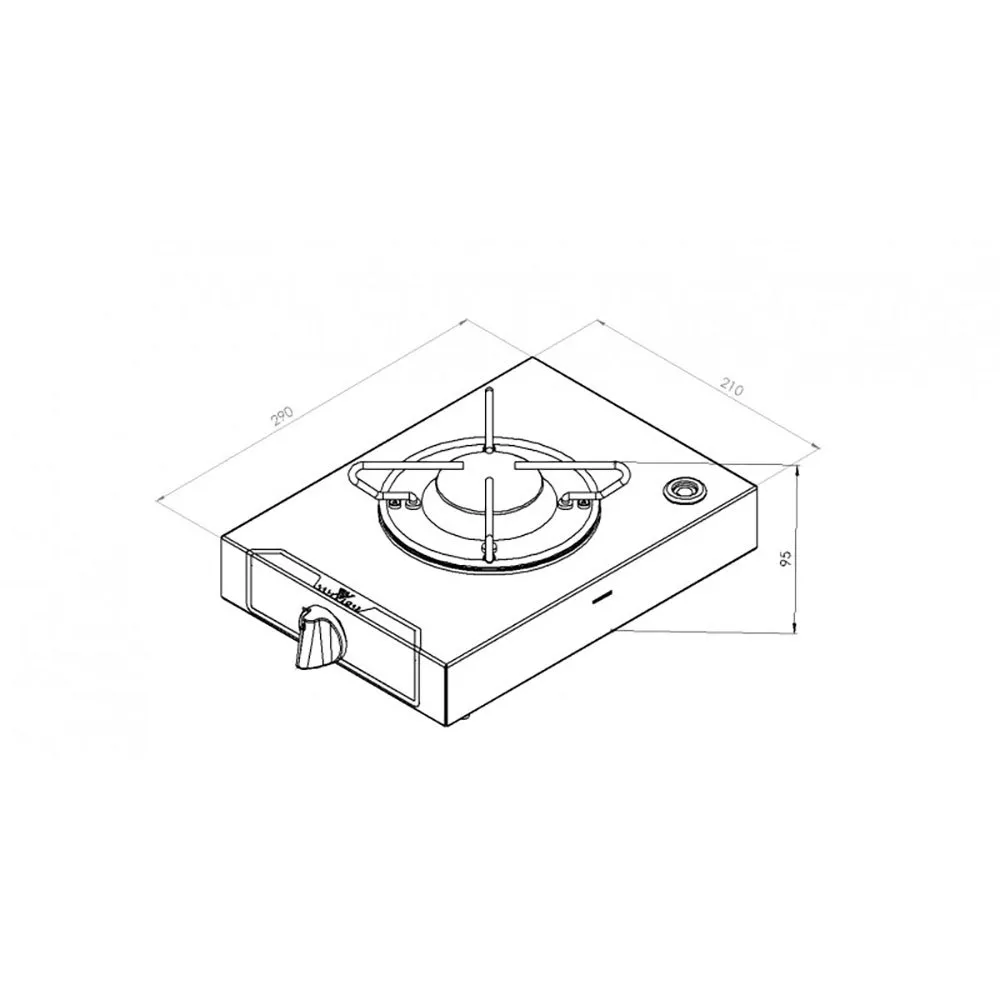 Encimera de gas con encendido manual, acero inoxidable pulido espejo. Con termopar de seguridad. Completo con soportes y tornillos de fijación. Con orificio para soporte de olla. Certificado CE.