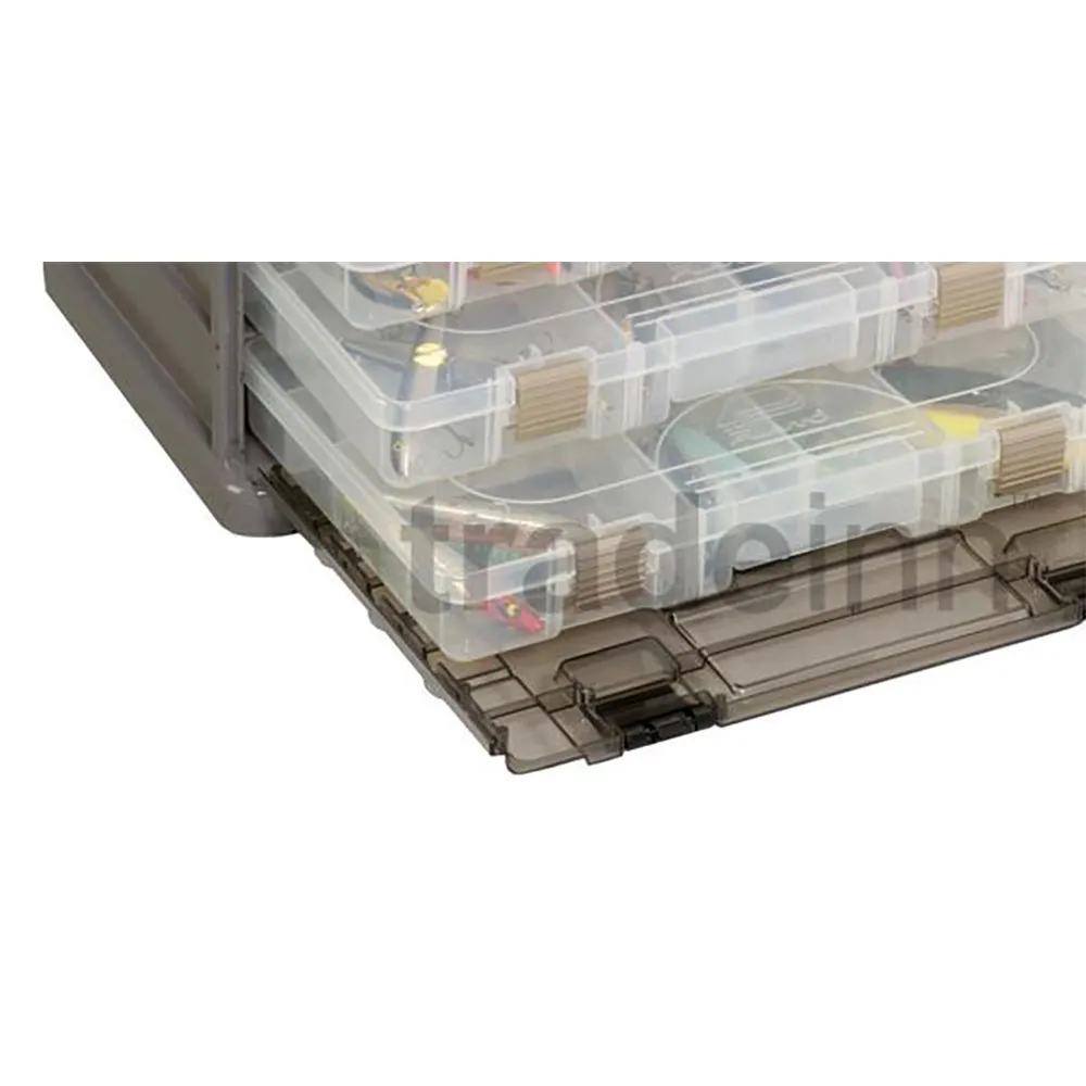 El sistema de portaequipajes Guide Series ™ Stowaway® está diseñado en torno a una idea simple: haz que sea rápido y fácil para los pescadores acceder al equipo y los aparejos, para que puedan pasar más disfrutando del aire libre. Las cuatro cajas de servicios públicos Stowaway® de la serie 3700 incluidas cuentan con cierres fiables Prolatch ™. Y el almacenamiento de acceso superior con tapa Duraview ™ mantiene los artículos que necesita con más frecuencia al alcance de la mano. Acceda fácilmente a sus aparejos con esta caja de aparejos, que cuenta con cuatro cajas de herramientas con cierres Prolatch ™ y almacenamiento de acceso superior con tapa transparente.