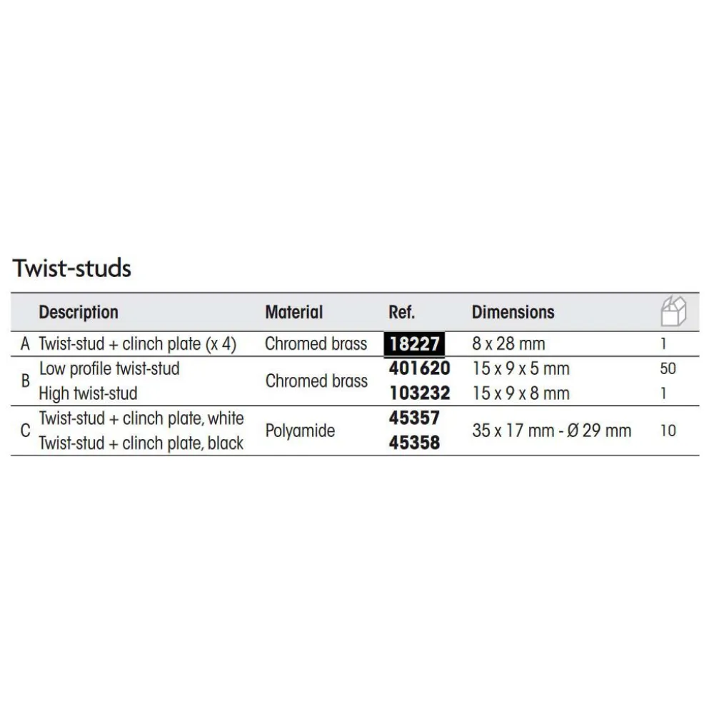 Ficha técnica Plastimo Botón de placa de cierre retorcido
