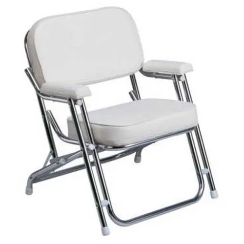 Mejore su experiencia en cubierta con la Silla Plegable de Aluminio PLASTIMO. Diseñada para el entorno marino, combina una comodidad superior con una durabilidad excepcional. Relájese sobre el mullido acolchado de espuma de PE envuelto en una funda de PVC de grado marino, blanca y nítida, que resiste los rayos UV y el agua salada. El robusto pero ligero armazón de aluminio es resistente a la corrosión y se pliega para un almacenamiento sin esfuerzo y que ahorra espacio. Es la combinación perfecta de estilo, comodidad y funcionalidad para cualquier cubierta o bañera de barco, haciendo que cada momento en el agua sea más agradable