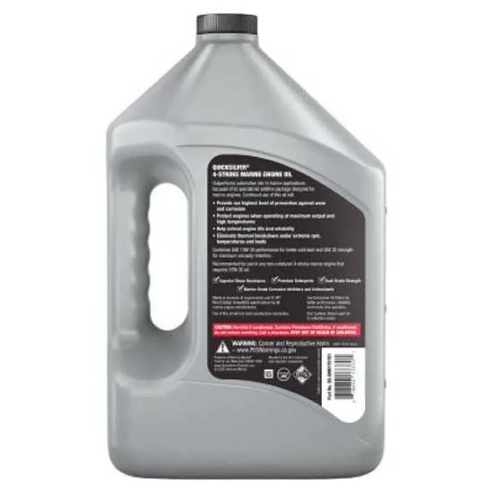 Mantenga el funcionamiento interno de su motor libre de depósitos nocivos que puedan restarle potencia y eficiencia. Este aceite contiene detergentes y dispersantes premium que combaten activamente la formación de lodos, carbonilla y barnices. Al mantener los pistones más limpios y prevenir el agarrotamiento de los segmentos del pistón, ayuda a que su motor mantenga la compresión máxima, la potencia de salida y la economía de combustible viaje tras viaje Desarrollado por el fabricante líder mundial de sistemas de propulsión marina, el aceite Quicksilver 10W-30 es la opción de confianza para el mantenimiento de todas las principales marcas de motores marinos de 4 tiempos. Su clasificación multiviscosidad 10W-30 garantiza una excelente fluidez para arranques en frío fáciles, al tiempo que mantiene una estabilidad superior a altas temperaturas de funcionamiento. No comprometa la salud de su motor con un sustituto automotriz. Dele a su motor marino el cuidado especializado que merece e invierta en el rendimiento superior, la fiabilidad inigualable y la salud a largo plazo que solo Quicksilver puede proporcionar