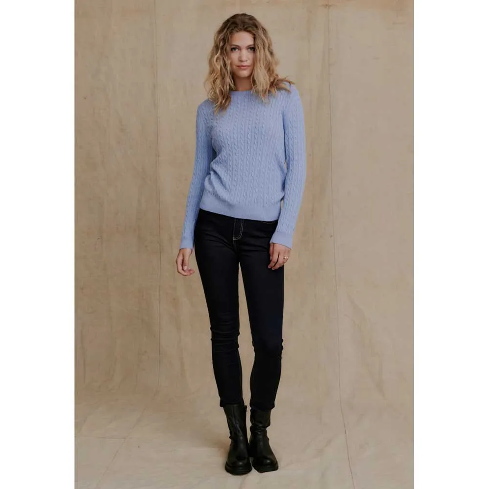 Suéter de punto trenzado de algodón orgánico clásico con cuello redondo y bordado del logo Redgreen en la manga izquierda.