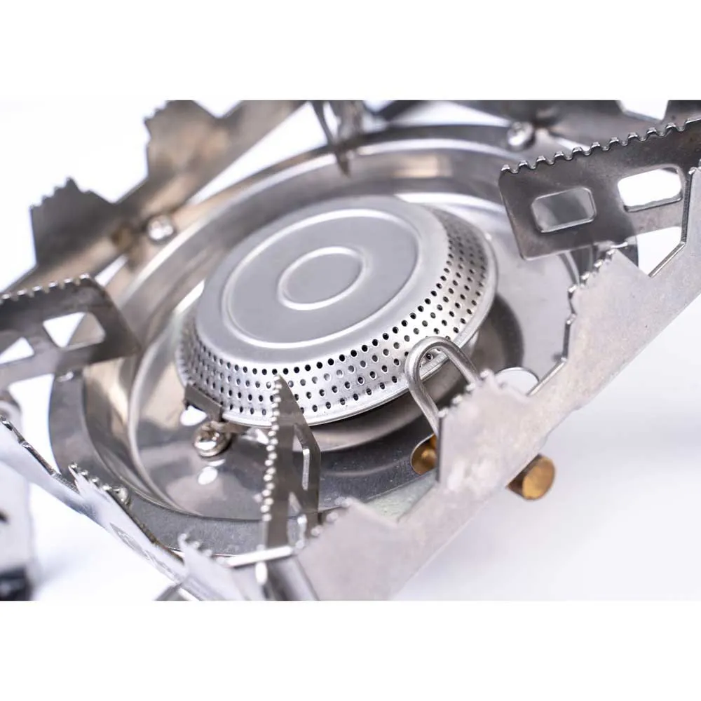 La estufa viene con un regulador de presión integrado, que garantiza una llama constante y controlada incluso en condiciones climáticas adversas. Esta característica la hace ideal para usar durante viajes de pesca o vivacs donde el clima impredecible es común.