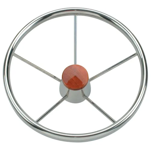 El diseño clásico de 5 radios es un testimonio del estilo náutico atemporal, que complementa cualquier panel de instrumentos de barco, ya sea moderno o tradicional. El brillo brillante del acero inoxidable pulido se acentúa perfectamente con la elegante tapa de madera en el buje central, agregando un toque de calidez y sofisticación clásica. La instalación es sencilla y directa gracias al cono universal, diseñado para adaptarse al eje cónico estándar de 3/4" que se encuentra en la mayoría de los sistemas de dirección marina. Esto lo convierte en una mejora ideal para una amplia gama de lanchas a motor, veleros y yates.