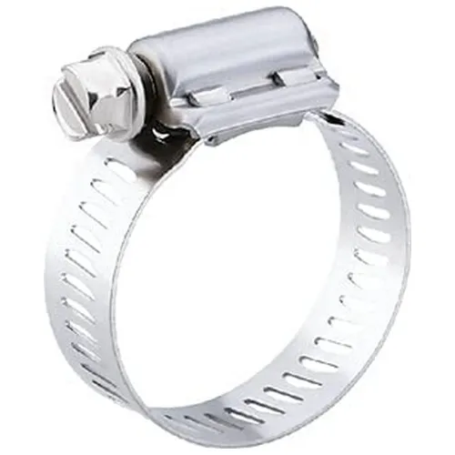 Abrazadera de manguera de tornillo sin fin automotriz e industrial de uso general con perforaciones arciales para mayor resistencia.