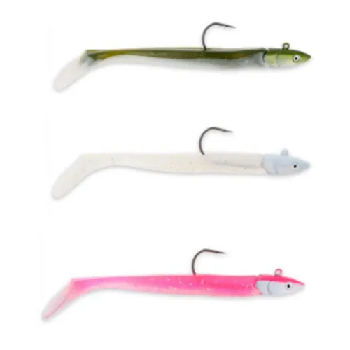 Cabeza plomada con forma afilada y textura de pez que junto con los ojos realistas hacen que este señuelo sea muy efectivo.