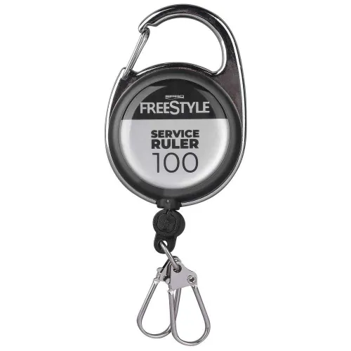 La regla de servicio es una herramienta útil para conectar a sus alicates de acción plegable Freestyle u otros accesorios. El sistema de cuerda automática se puede sacar hasta 100 cm durante el uso. La conexión entre el producto y el mosquetón es una regla de 100 cm para medir su captura si es necesario.