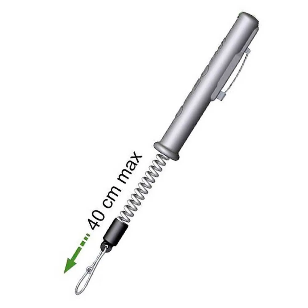 Retractor ligero y compacto. El resorte de plástico es potente, duradero y se puede extender hasta 40 cm. Equipado con un pasador de seguridad para máxima seguridad y broche de acero inoxidable. 1 por bolsa, paquete de 10 bolsas.