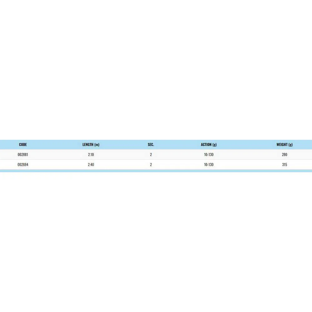 Caña fabricada en carbono composite de acción progresiva fuerte, con puntera flexi-glass maciza, capaz de detectar cualquier picada.