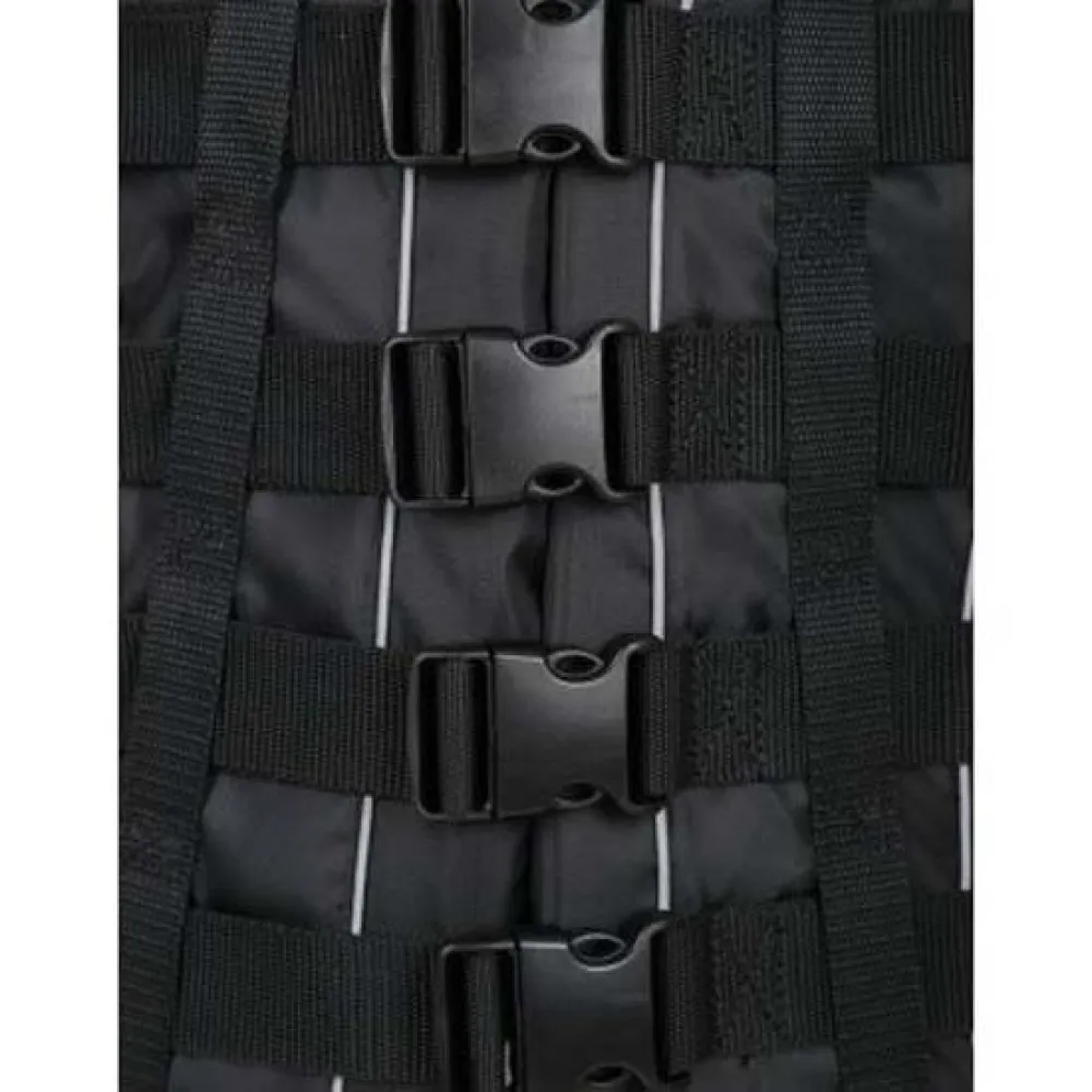 Una ayuda a la flotabilidad de 50N, con un sistema de cierre frontal de cuatro hebillas de apertura rápida.