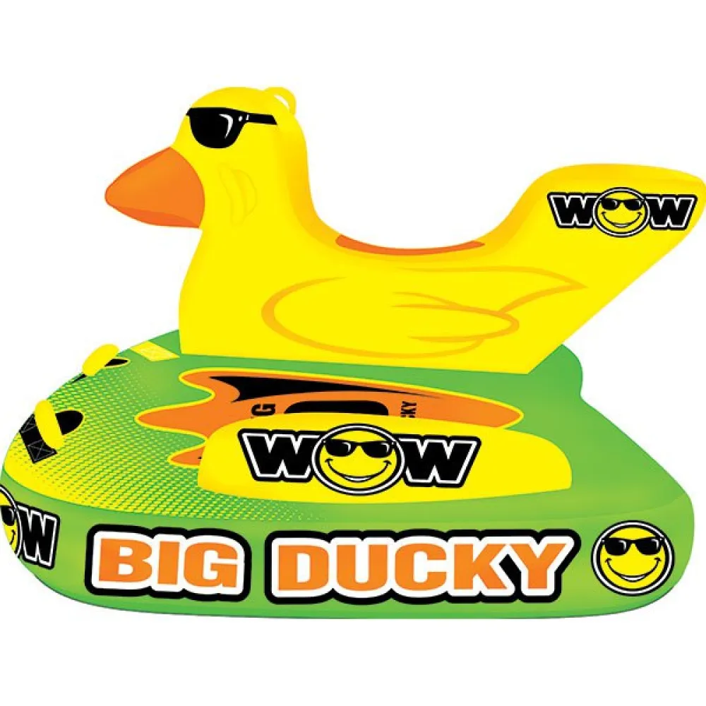 capacidad máxima el diseño de color hi vis del concepto big ducky personalizado de wow con gráficos publicitarios crea emoción para los navegantes, pero también les permite a todos en el agua saber que usted está allí. el viaje se vuelve extremo almohadillas de cuerpo de espuma eva con forma de patas de pato grandes construcción de sistema de remolque de 3 puntos de malla ancha y resistente múltiples posiciones de conducción, sentado, acostado, de pie o arrodillado conector de remolque ez moldeado incorporado para enganches de punto de remolque ez cubierta de nailon resistente con cremalleras resistentes vejigas de pvc resistentes doble cincha manijas de espuma con protectores de nudillos de espuma eva tapas de válvula con cremallera válvula de velocidad para inflar y desinflar rápidamente respaldado por 1 año de garantía.