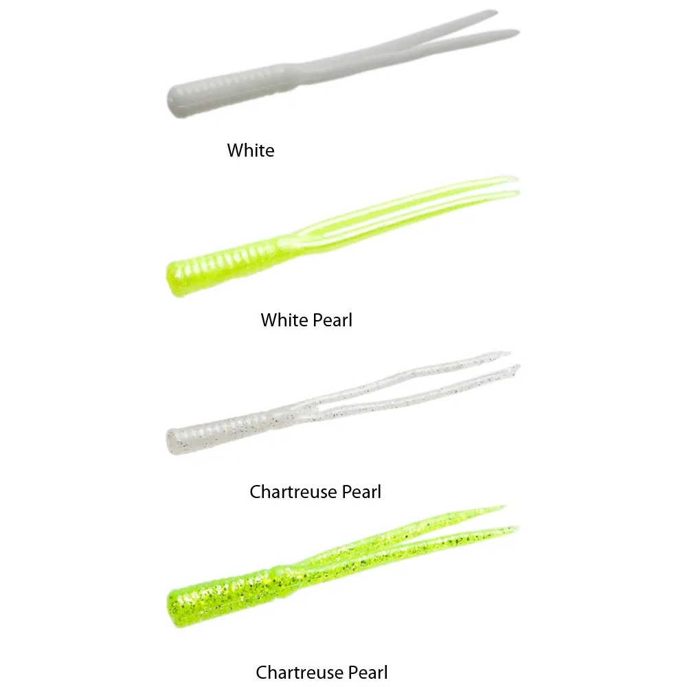El señuelo blando ZOOM BAIT Split Tail Trailer es un señuelo versátil y muy efectivo para los pescadores. Con sus 101 mm, tiene el tamaño perfecto para atraer a una amplia variedad de especies de peces. El vibrante color Chartreuse Glitter con su acabado brillante imita a la presa natural de los peces, lo que lo hace irresistible para ellos.