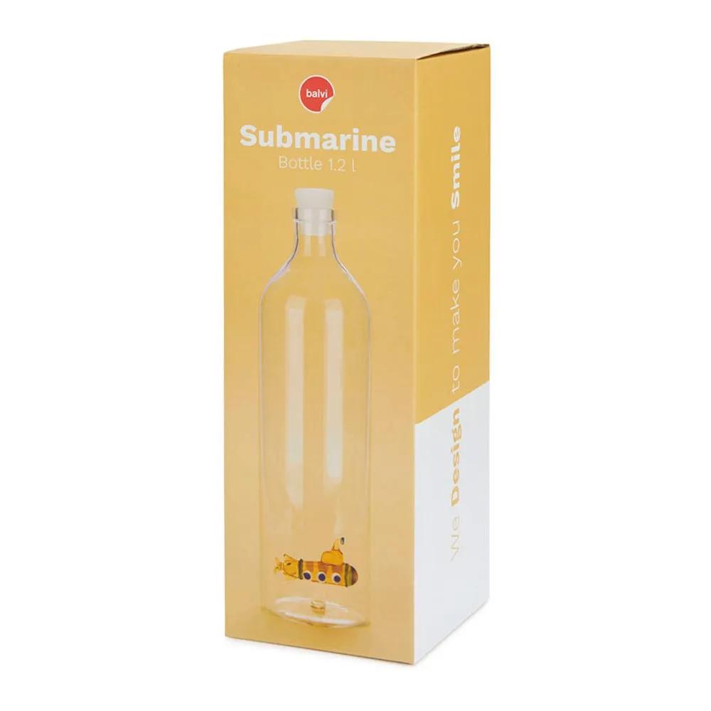 Balvi Bottle Atlatnis Submarine Keltainen väri Vesipullo sisustuksen yksityiskohdilla sukellusveneen muodossa Lasi 30x8,5x8,5 cm.