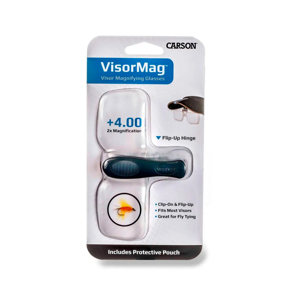 VM 12, VisorMag™ +4,00 dioptria (2x teho) suurennuslinssi hattuihin tai lippiin on sarja kiinnitettävät, käännettävät suurennuslasit, jotka kiinnittyvät useimpien lippalakkien ja hattujen reunaan. Täydellinen perhosidontaan ja kaikkiin perhokalastustarpeisiin. Mukana suojaava pehmeä pussi, sen kristallinkirkkaat akryylilinssit antavat sinulle terävän, vääristymättömän näkymän, jonka avulla voit nähdä pienimmätkin yksityiskohdat helposti. Nämä suurennuslasit ovat +4,00 dioptria vastaa 2x suurennustehoa. Säilytä nämä suurennuslasien klipsit varustelaatikossasi, jotta sinulla on ne aina valmiina.