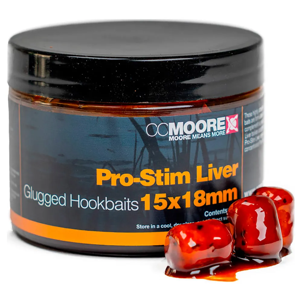 CC Moore Pro-Stim Liver Glugged Hookbaits 15X18mm15X18 PROSTIM Erittäin houkuttelevat, kestävämmät, dumbell-muotoiset pohjaonget, jotka on glugattu vastustamattomassa Pro-Stim Liver Bait Boosterissamme. Erittäin tehokas kalastettuna yksittäisenä, erittäin houkuttelevana pohjaonkena, yhdessä PVA-pussiesitysten kanssa tai lumimiesesityksessä Pro-Stim Liver Air Ball Pop Upin kanssa tasapainottamaan rigi.