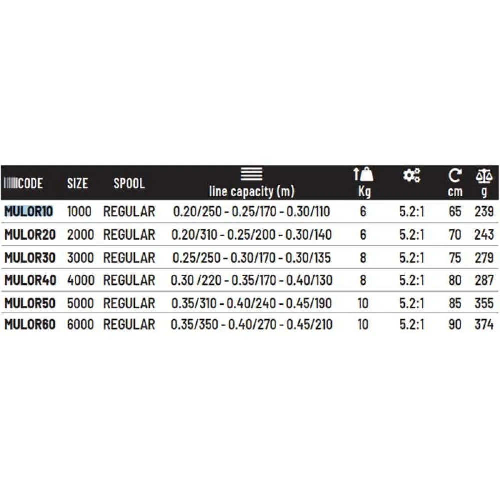 Tavallinen kela kaikissa kooissa suurempaa siimatilavuutta varten ja knurlattu nauha punomiseen (knurlaus).