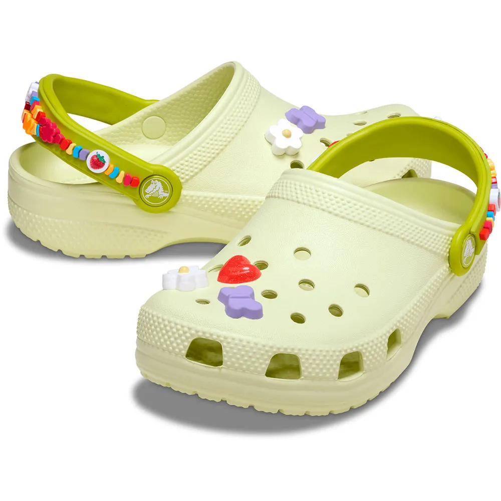 Tässä ikonisessa puukengän versiossa on ystävyysrannekoriste kantapääremmissä sekä mukana hauska Jibbitz™-korusetti.