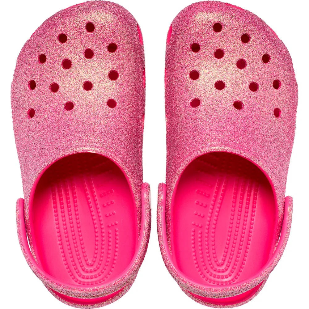 Hauska uusi hohtava glitterikäsittely antaa lisää tyyliä tälle versiolle ikonisesta Crocs-kengästä.