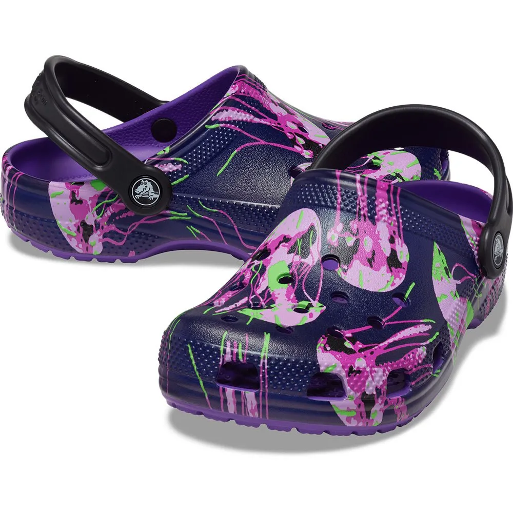 Crocs Classic Clogs tarjoaa kevyen Iconic Crocs Comfort™:n, ainutlaatuisen grafiikan ja värit jokaiselle persoonallisuudelle sekä jatkuvan kutsun olla mukava omissa kengissäsi.