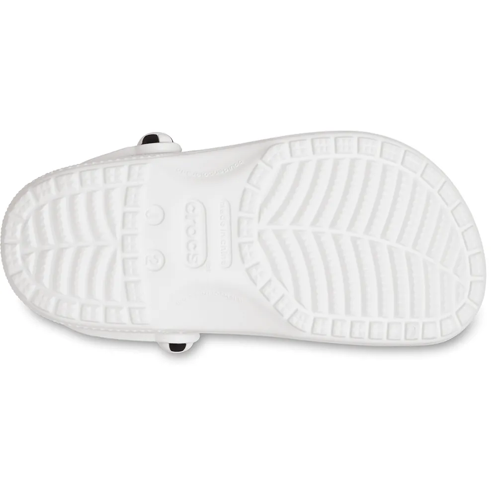 Tämä versio ikonisesta Crocs-kengästä on suunniteltu erityisesti nuorille jalkapallofaneille. Ainutlaatuinen päällinen on saanut inspiraationsa ikonisesta mustavalkoisesta jalkapallosta, ja jalkapalloaiheiset niitit ja kiinteä laastari takaremmin päällä auttavat pienempiä näyttämään rakkautensa jalkapalloon. Lisäksi jalkapallopalapelikuvio pohjallisissa auttaa pienempiä laittamaan kengän oikeaan jalkaan. Crocs tarjoaa laajan valikoiman Classic Clogs -kenkiä lapsille ja taaperoille, joissa on omaperäisiä, hahmorikkaita kuvioita ja muita inspiroivia malleja, jotka auttavat lapsia ilmaisemaan itseään ja saamaan uusia ystäviä, mikä tekee pienempien elämästä hauskempaa.