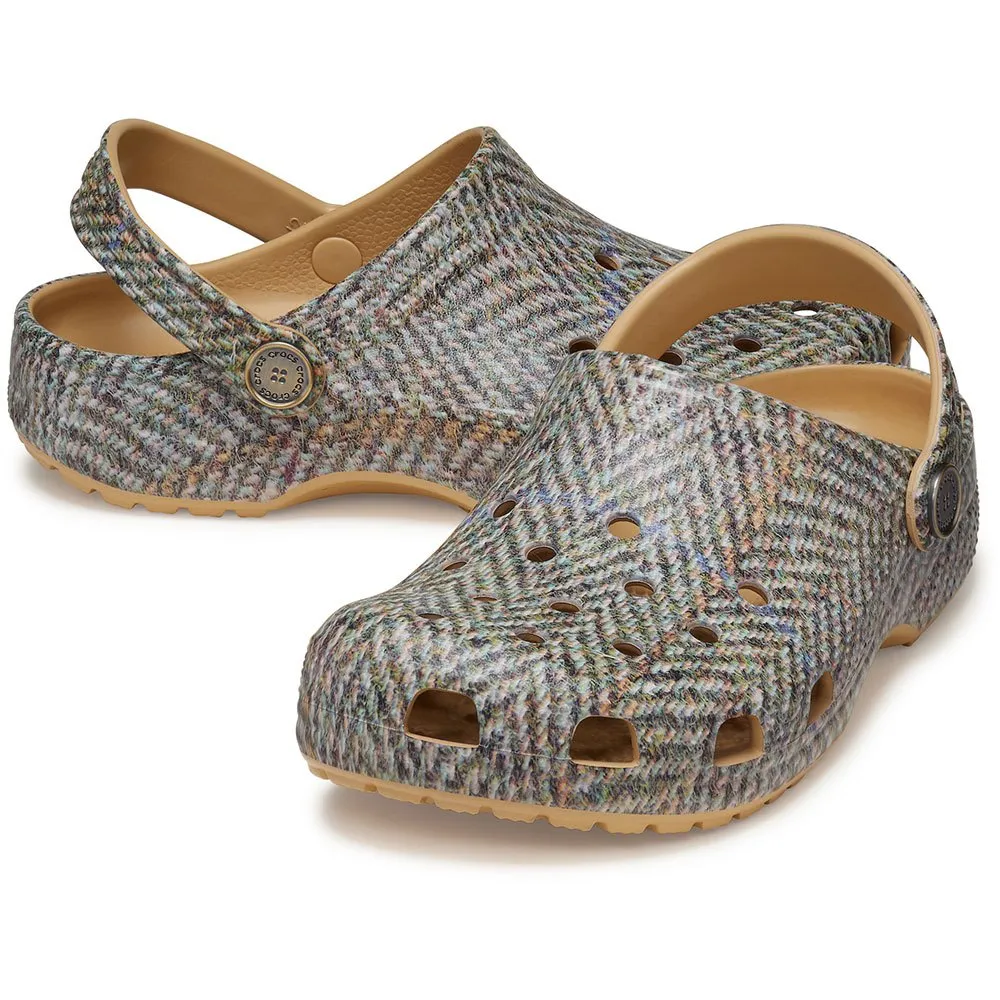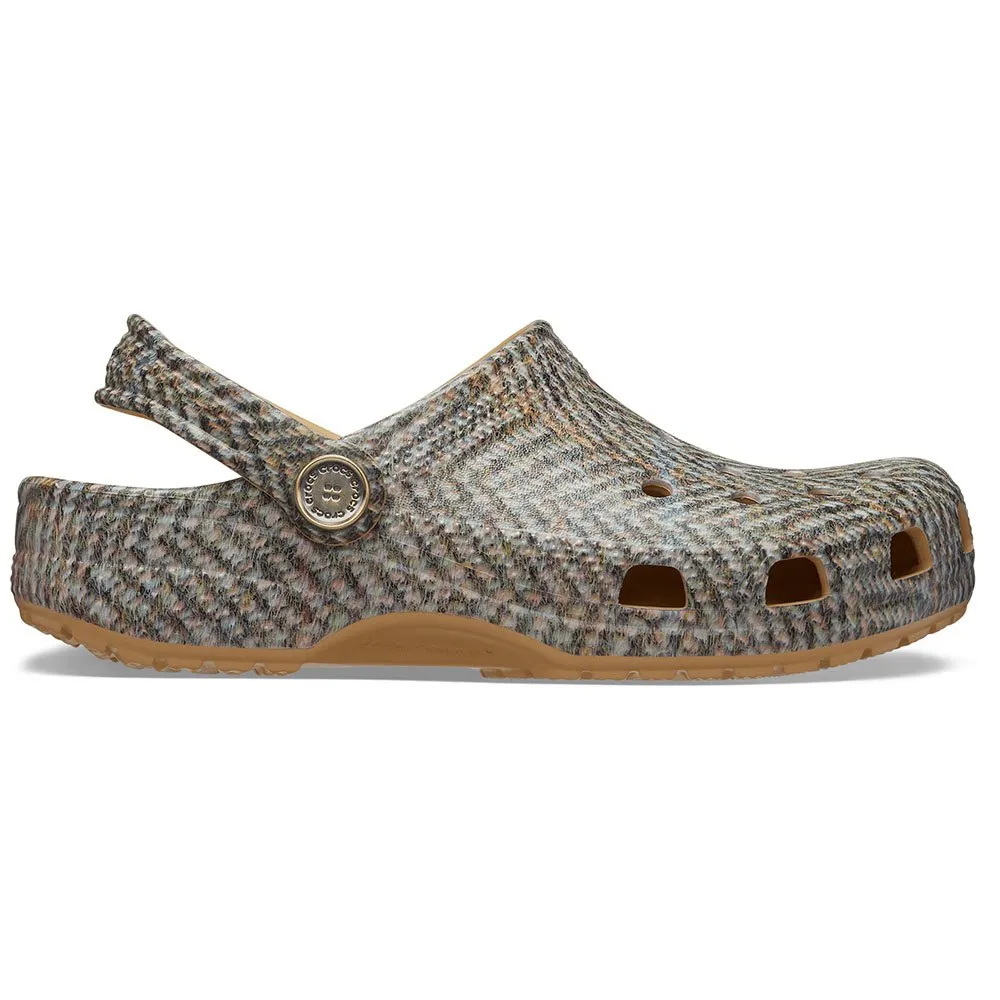 Uusi tweed-kuvio ja napeista inspiroituneet niitit antavat lisätyyliä tälle klassiselle Crocsille.